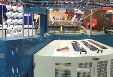 2. Precision Knitting - Using state-of-the-art circular knitting machines, we transform yarn into high-performance structures. Our facility specializes in open-width knitting, producing flawless single jersey, lycra jersey, and technical knits with industrial precision.